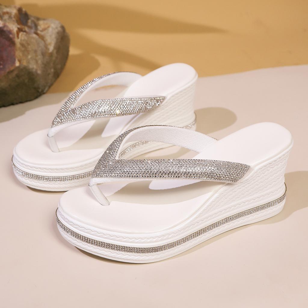 Design Fashion Casual Wedge Heel Flip Flops for Women Summer New Elegant Comfortable Thick Soled Beach Slippers