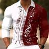 3D Printed Men's Long Sleeved Polo Shirt with Music Symbol Pattern, Suitable for Spring and Summer Wear