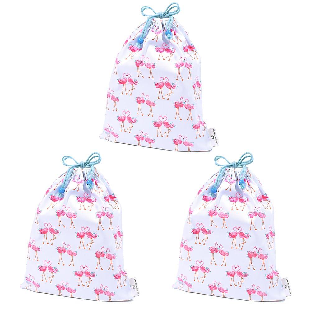 LAURA ASHLEY/COLORFUL CANDY STYLE Large Drawstring Gym Clothes Bags, Pretty Flamingo Design, Set of 3, Stylish Gym Clothes Bags for Changing, Exercise