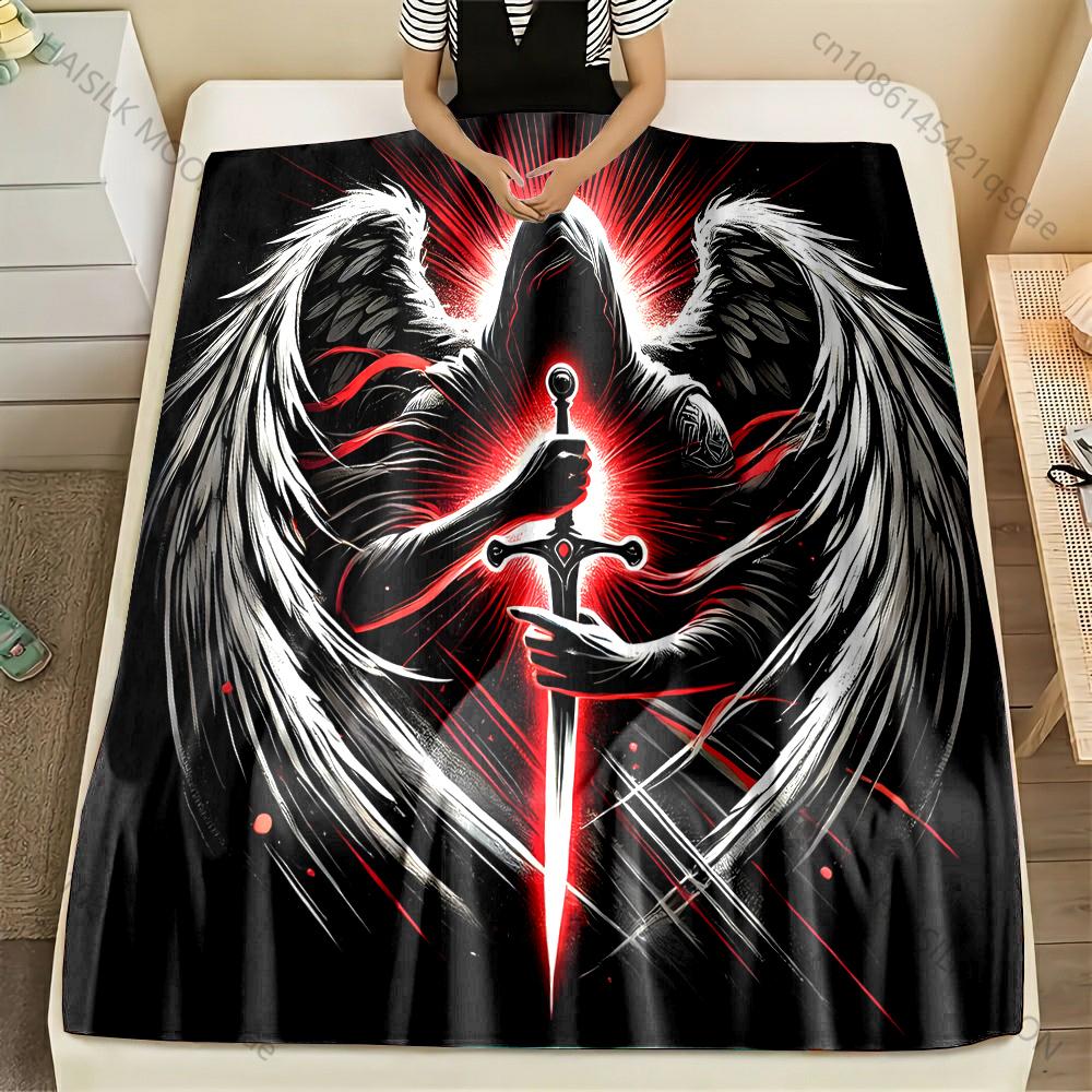 Multi-size Dark Angel with Sword. Pattern Blanket Flannel Material Soft Warm for All Seasons, Home Outdoor Camping Picnics RV