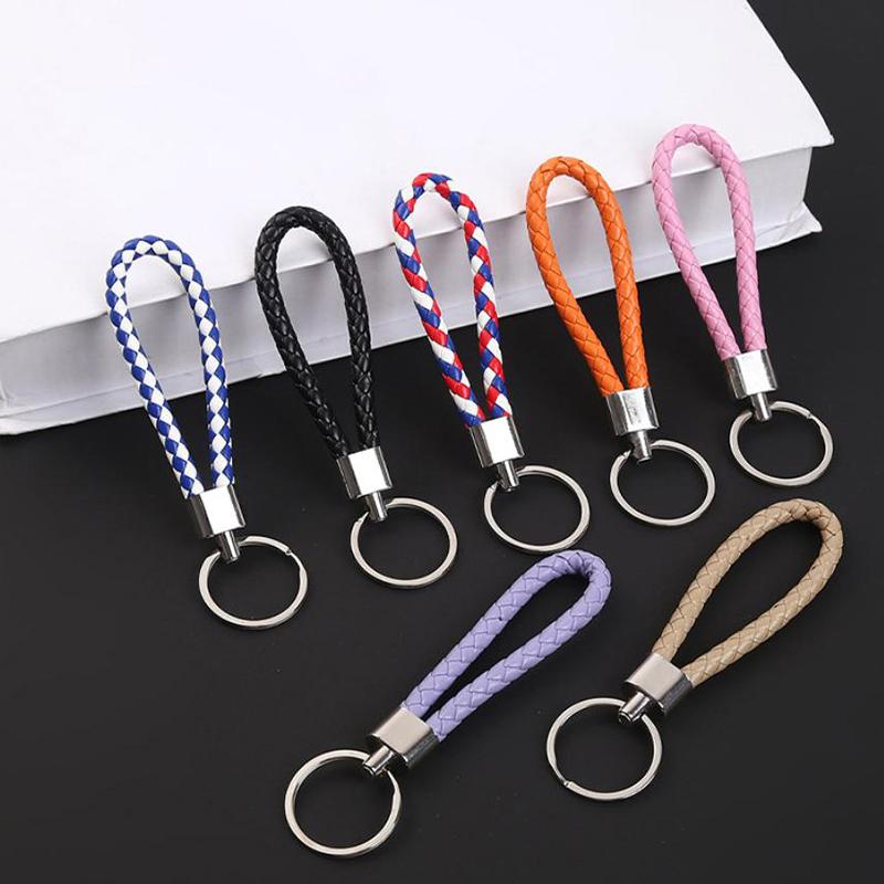 5Pcs/Pack Braided Leather Keychain Colorful Portable Keyring Organizer Leather Lanyard For Car Key Mobile Phone Strap Accessory