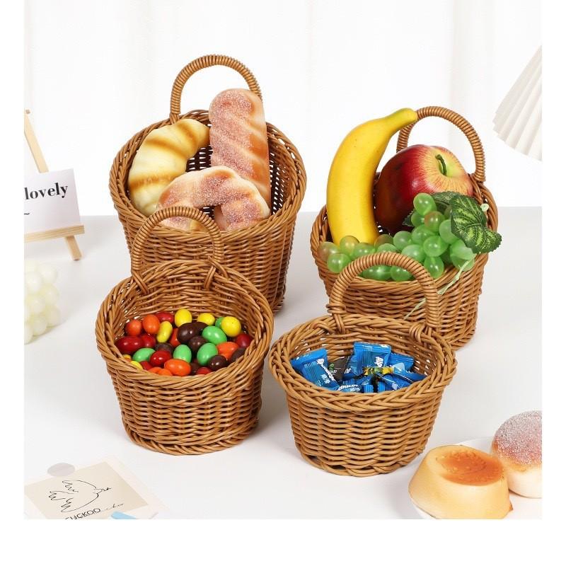Imitation Rattan Kitchen Storage Basket Brown with Handle Hand-woven Hanging Baskets Sundries Organizer Vegetable Fruit Flower