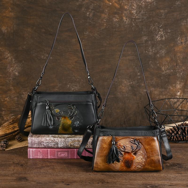 New Women's Genuine Leather Shoulder Bag, Retro Crossbody Bag, Top Layer Cowhide, Chinese Style Mother Bag, Casual Qipao Women's Bag