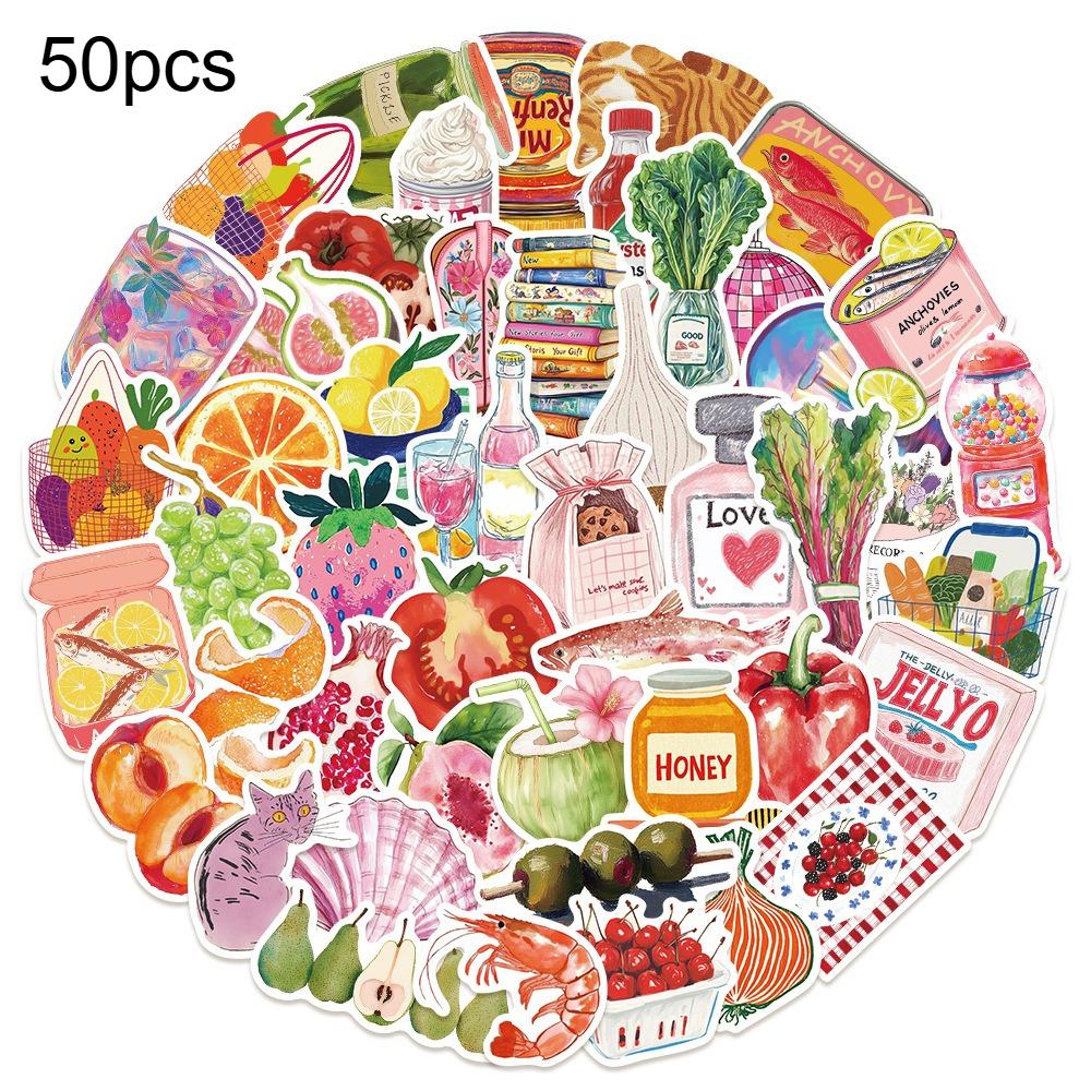 50pcs Cute Cartoon Retro Aesthetic Food Stickers Decals Laptop Phone Fridge Suitcase DIY Crafts Decoration Stickers Scrapbooking