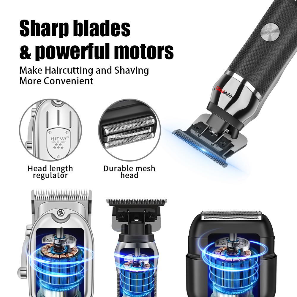 3PCS Professional Hair Clipper Set for Men Cordless Barber Clippers Set and Trimmer Kit USB Rechargeable Electric Beard Tool Kit