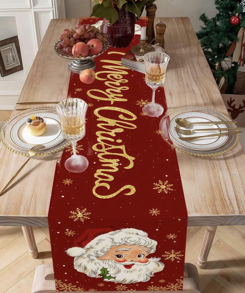 1pc 30*180CM Christmas Linen Table Runner Merry Christmas Decoration for Home Xmas Table Decor 2025 Navidad Notal Noel Ornament