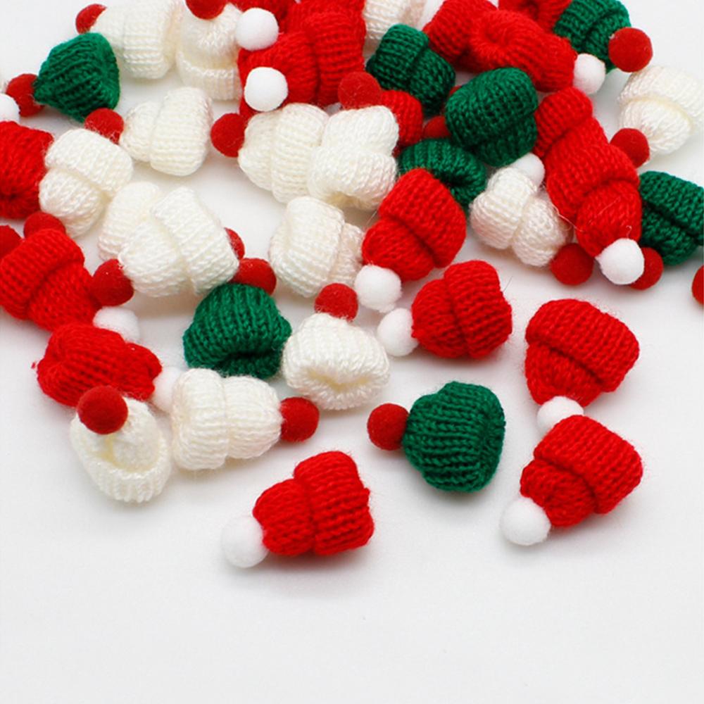 5pcs Mini Knitted Christmas Hat Cake Toppers Christmas DIY Finger Hat for Christmas New Year Party Cake Decoration Supply