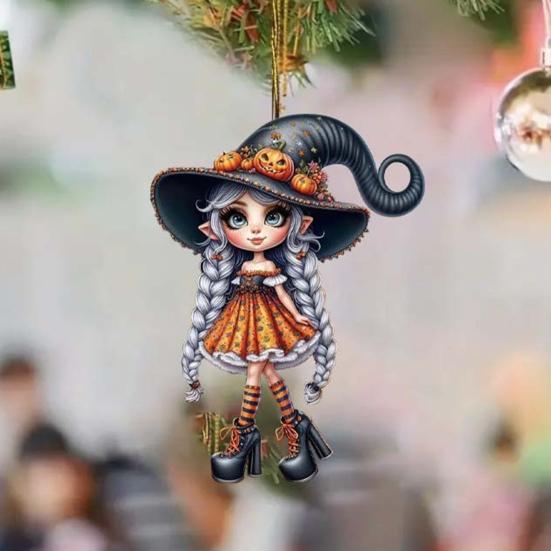 Enhance the festive spirit with our witch pendant, featuring rich Halloween elements like pumpkin lanterns and bats. This exclusive accessory adds a touch of ritual to any setting. Easy to install with simple lanyards, it's perfect for home, office, or car decoration.