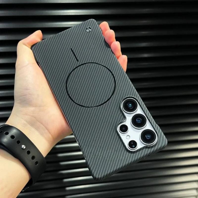 Luxury Matte Frameless Carbon Fibre Wireless Charging Magnetic For Magsafe Case For Samsung Galaxy S25 S24 S23 Plus Ultra Cover