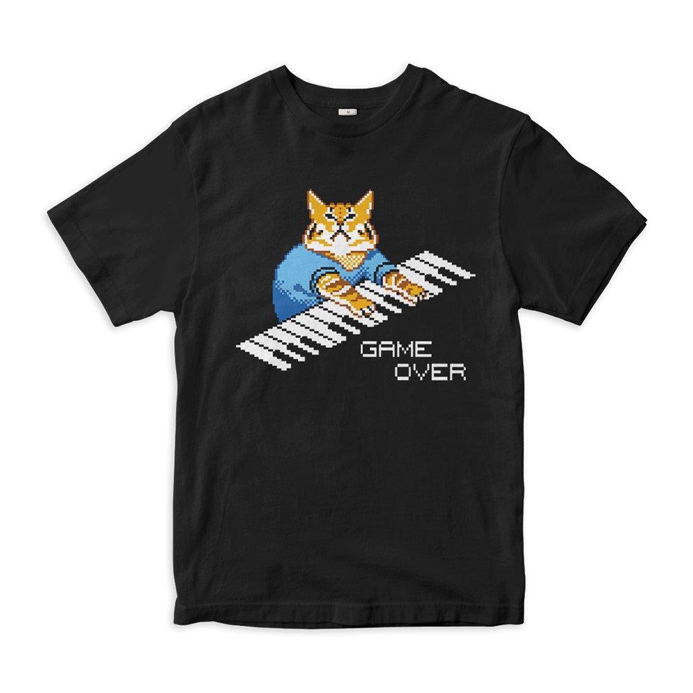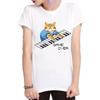 Keyboard Cat Game T-shirt Fun Printed Cotton Couple Short Sleeves for Men and Women