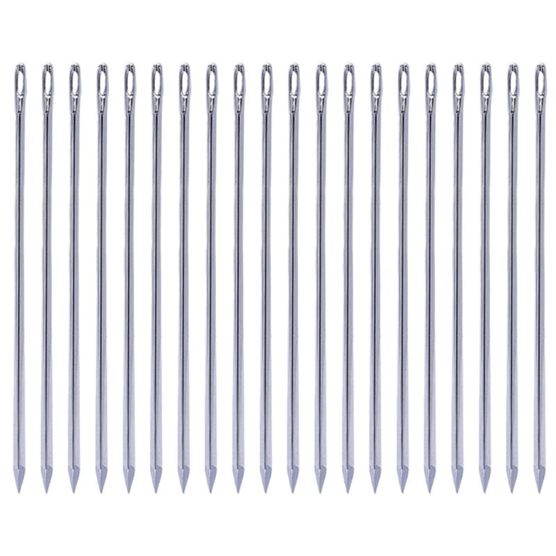 20pcs Leather Crafts Sewing Needle Metal Silver Color Yarn Knitting Needle DIY