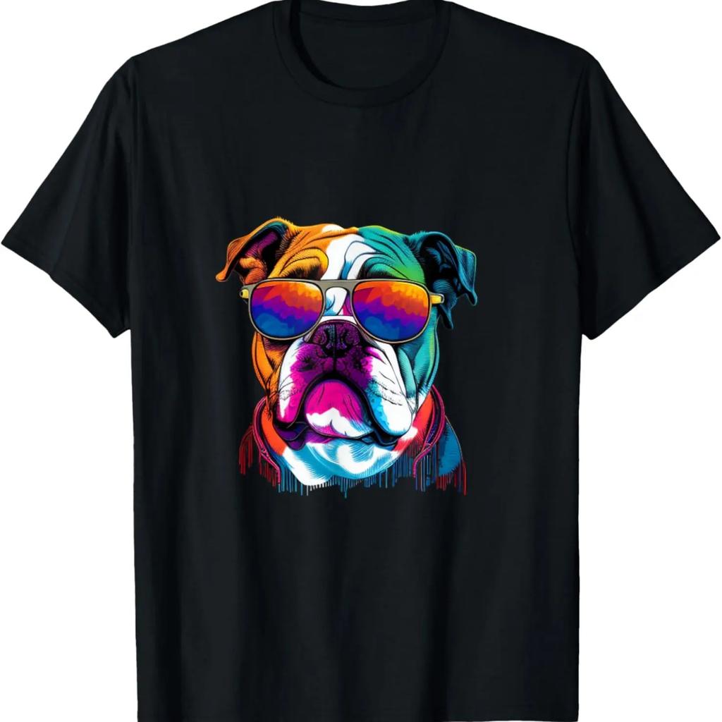 Funny Multicolor English Bulldog Face T-Shirt