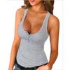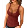 HNXC Women's Fashion Casual Solid Color Print Sleeveless U Neck Blouses & Shirts