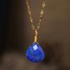 Natural Stone Pendant, Cut Water Droplet Necklace, Blue Gold Amethyst jewelry,Christmas Gift, Stocking Stuffers, Valentine's Day Gift