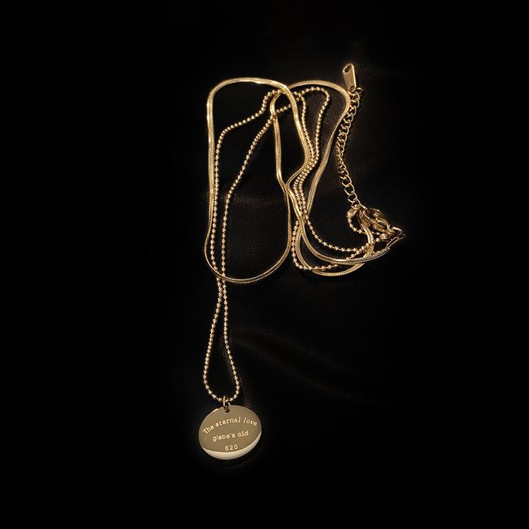 European and American Retro Niche Neck Chain Double-layer Stacked Round Brand Pendant Necklace Cold Titanium Steel Clavicle Chain