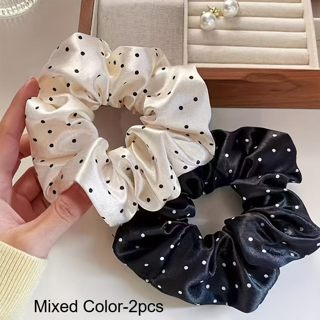 2pcs French Satin Polka Dot Colon Vintage Gentle Scrunchie High Stretch Ball Head Band Hair Cord Head Cord