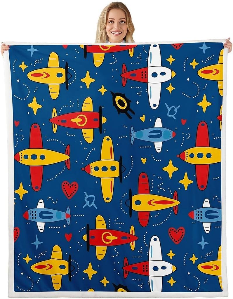 Colorful Airplane Blanket Soft Fleece Throw Kids Room Decor Aviation Theme Baby Gift Home Decoration