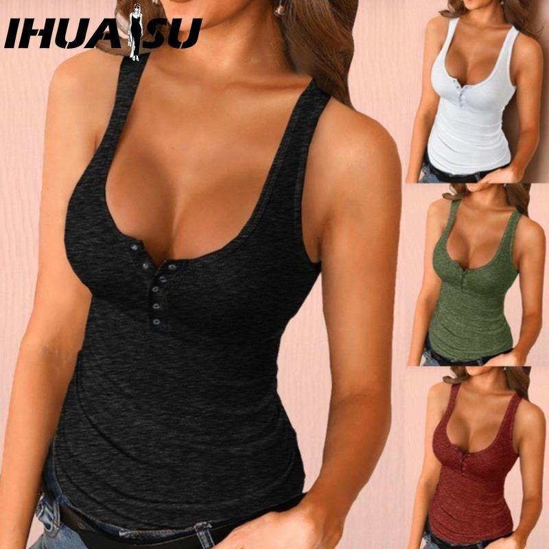 IHUASU Women's Fashion Casual Solid Color Print Sleeveless U Neck Blouses & Shirts