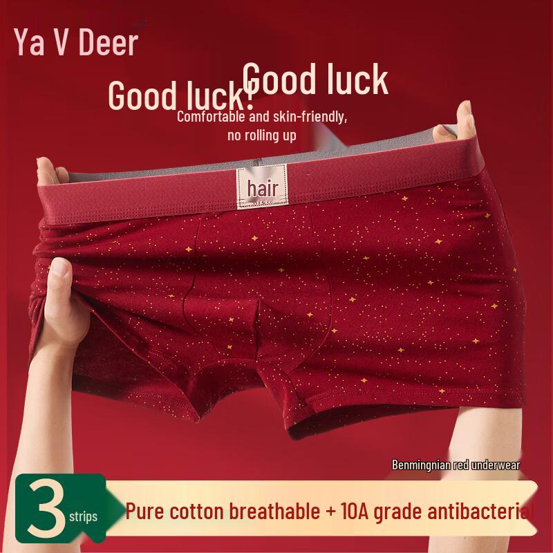 Men's Lucky Red Antibacterial Cotton Boxer Briefs
