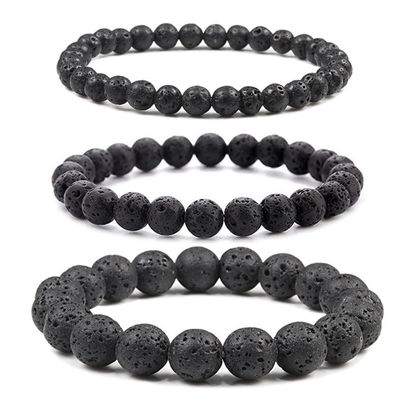 Charm Bracelet Natural Stone Beads 6/8/10mm Volcanic Lava Tiger Eye Beads Elastic Bracelets For Men Women Jewelry Pulsera Hombre