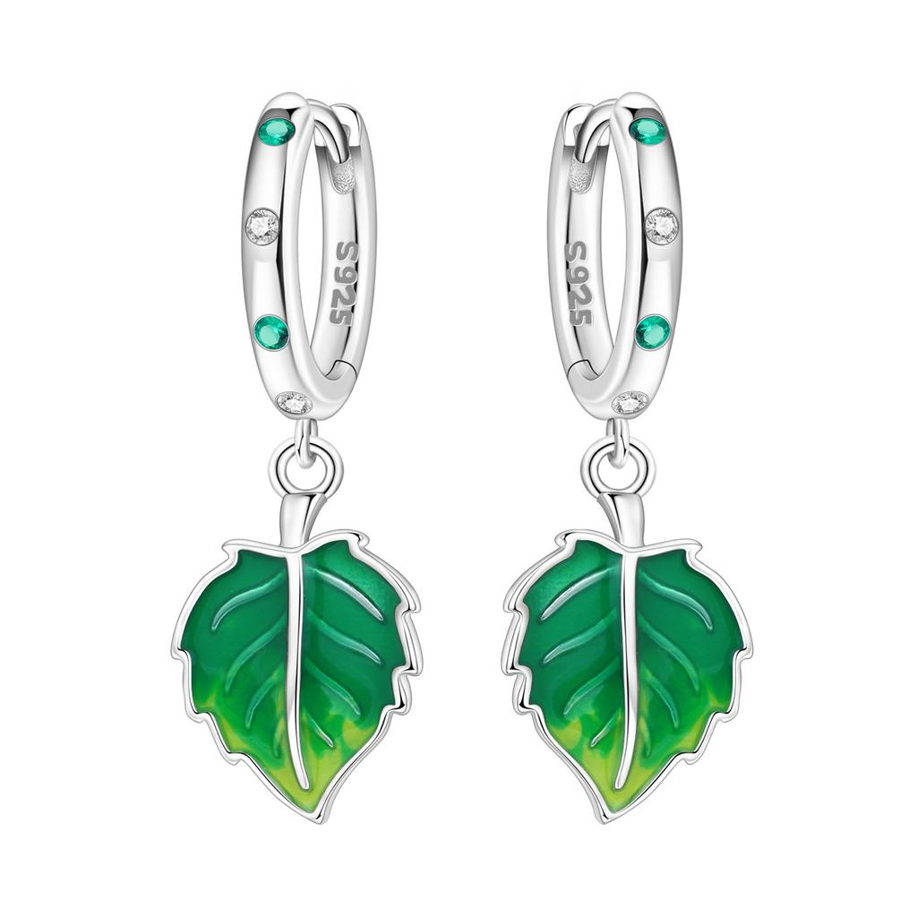 Orstarry 925 Silver Green Leaf Drop Earrings Handmade Jewelry Trendy Gifts for Women Party Anniversary