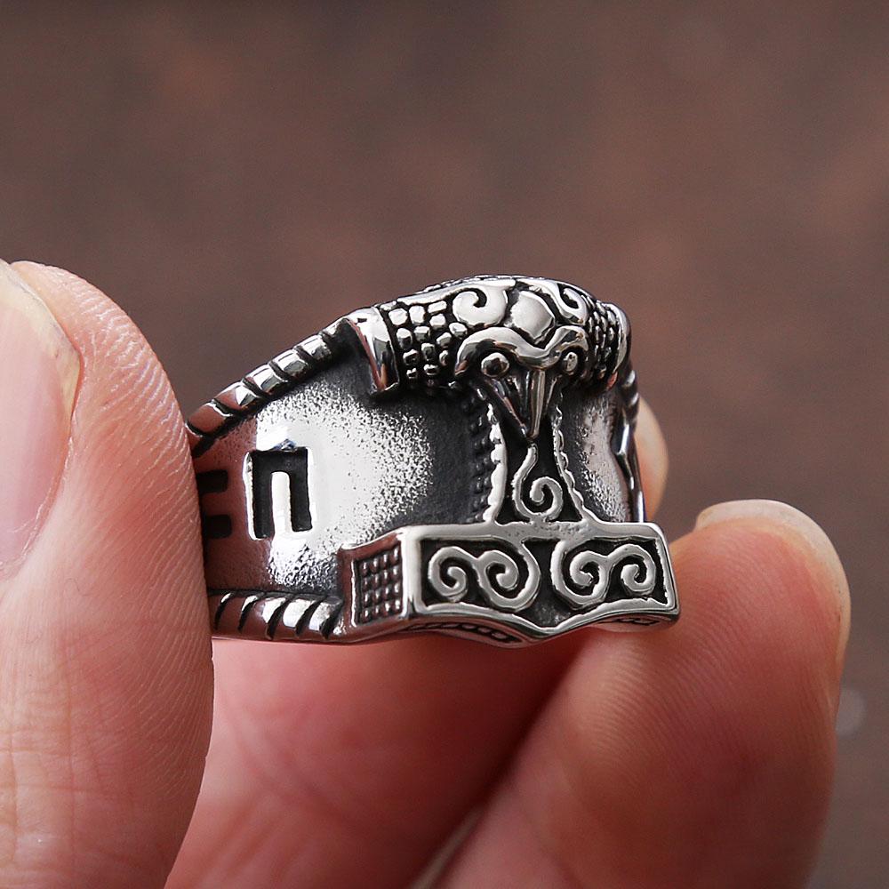 Norse Mythology Viking Thor's Hammer Ring Men Retro Stainless Steel Odin Celtics Knot Ring Biker Amulet Viking Jewelry