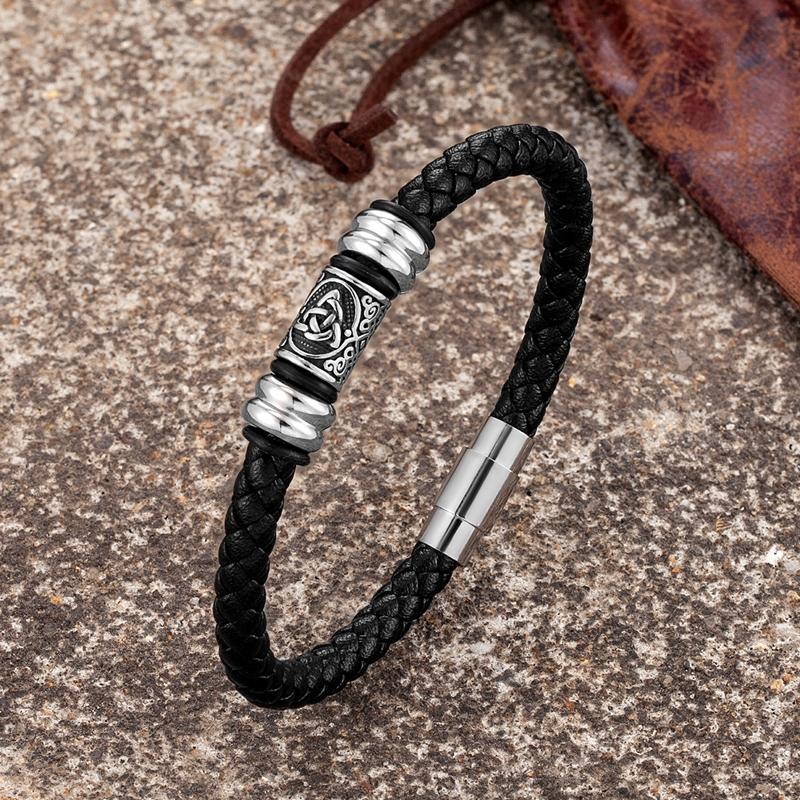Viking Bracelet Men Genuine Leather Norse Runes Amulet Viking Compass Wristband Norse Mythology Jewelry Gifts for Him