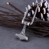 Vintage Nordic Vikings Anchor Odin Rune Necklace Stainless Steel Mjolnir Pendant Punk Jewelry Gift for Men