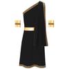 Style in ancient Greek, designed with one shoulder with extender, retro embroidered trims and metallic waistline, pullover robe type.