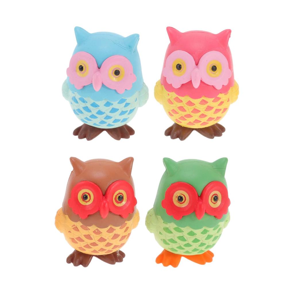 RENEWREVITAL Mini Miniature Set of Cute Animal DIY Car Bonsai Colorful Owl Figurines, Ornaments, 4, Figures, Desktop, Office, Decor, Gift, Landscape,