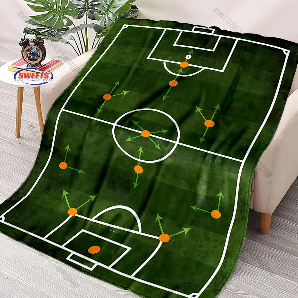 Green Field Football Tactical Print Blanket, Home Sofa Chairs Bed Decor Blanket Football Lovers Gift Blanket Next Day Shipping