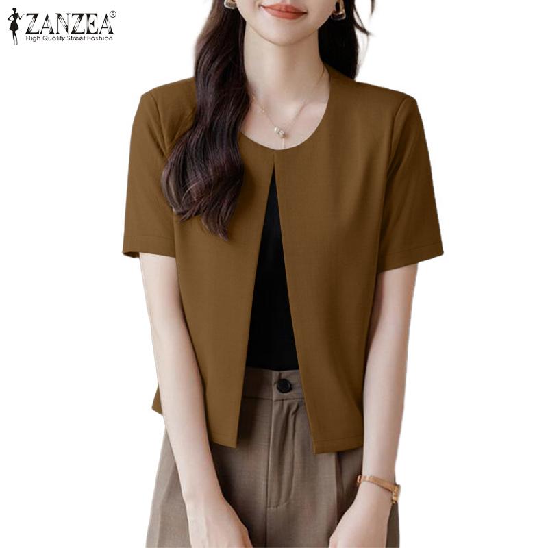 ZANZEA Women Casual Round Neck Short Sleeve Thin Cardigan Tops