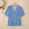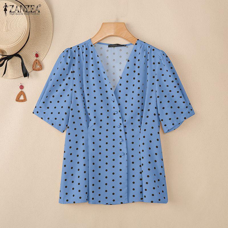 ZANZEA Women Casual V-Neck Short Sleeve Polka Dot Print Blouse