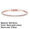 New 925 Pure Silver Rose Gold Bracelet Shining Classic Hip Hop Crystal Tennis Bracelet Women's Jewelry Fashion Wedding Gift