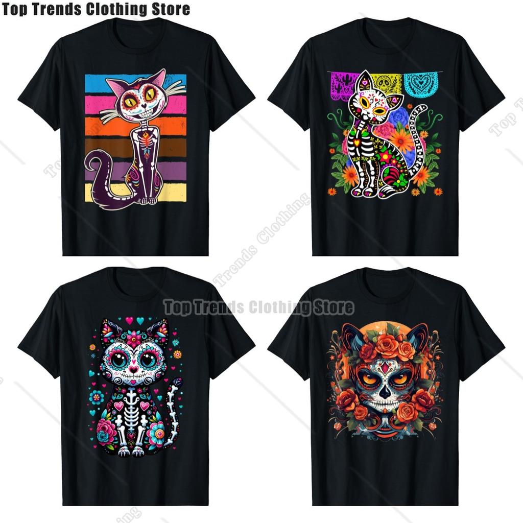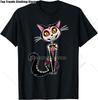 Cute Sugar Skull Cat Dia De Los Muertos Day of The Dead TShirt Mexican Summer Fashion Short Sleeved Tee TopsCasual Tshirt