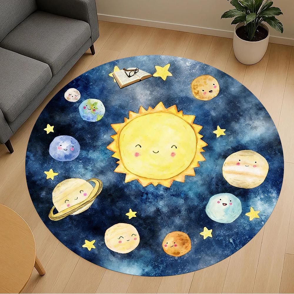 1pc Sun Planet Round Chair Mat Office Area Rug - Non-Slip, Floor Mat for Office, Bedroom, and Indoor Decor P127241