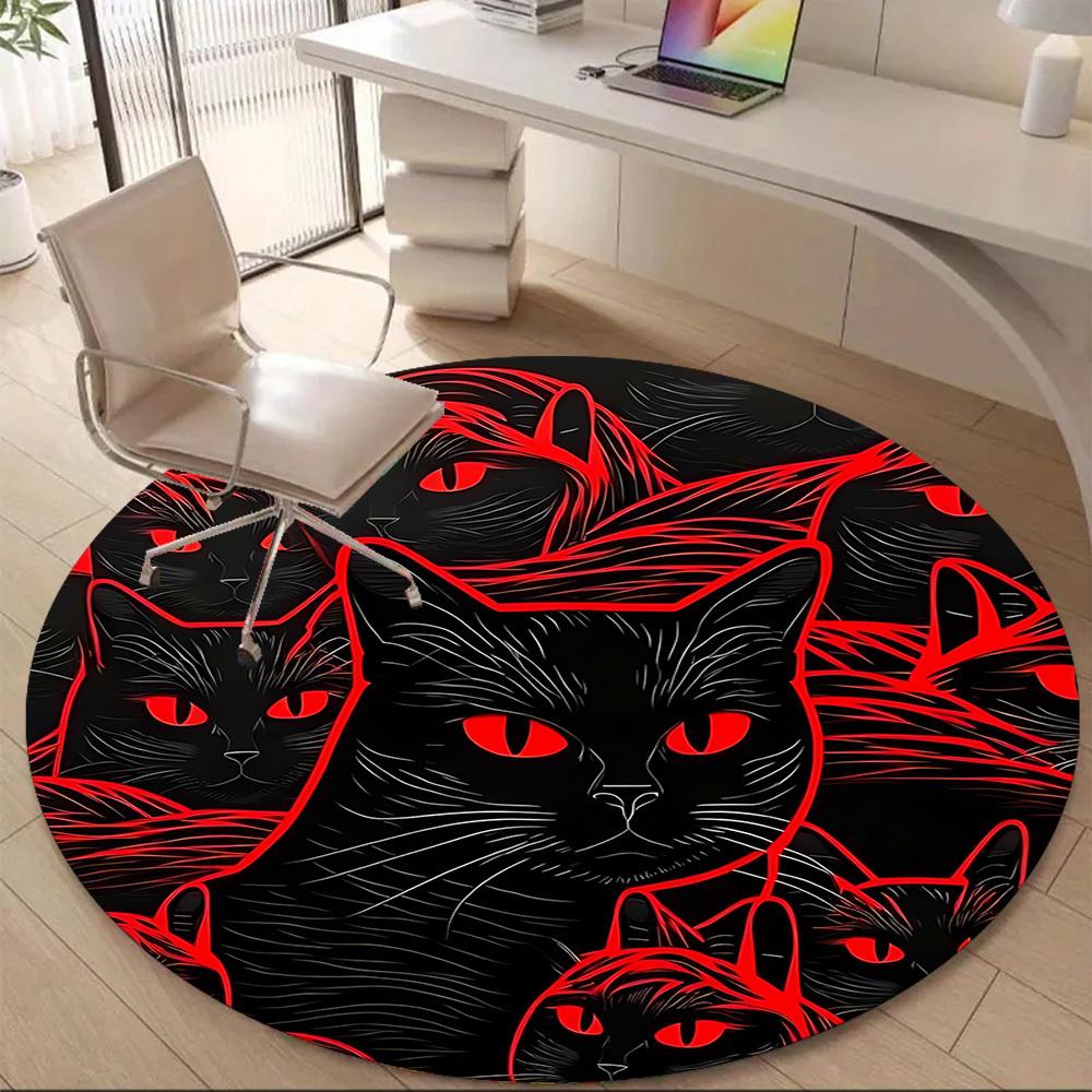 1pc Black Cats Office Round Area Rug, Indoor Mat Suitable ForOffice, Under Office Chairs Bedroom Living Room Home Decor T154