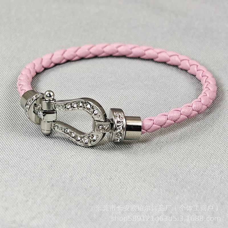High-end Stainless Steel Full Brick Magnet Horseshoe Buckle Head Bracelet Gold-plated Diamond-encrusted Male and Female Couples Full Diamond Hand Rope