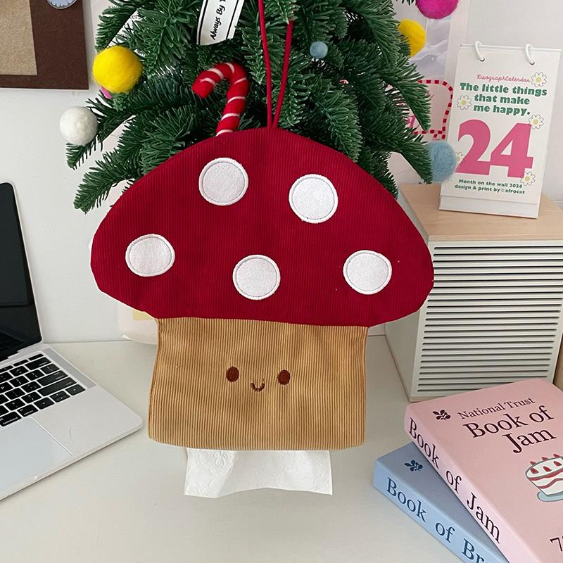 Cute Mushroom Tissue Box Wall Mounted Bathroom, Kitchen Fabric, Paper Drawer, Household Bedroom, Bedside Storage, Hanging Bag