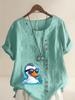 Women's Fashion Cool White Duck Print Casual Cotton Linen Short Sleeve Round Neck T-shirt Shirt Leisure Loose Summer Blouse Tops