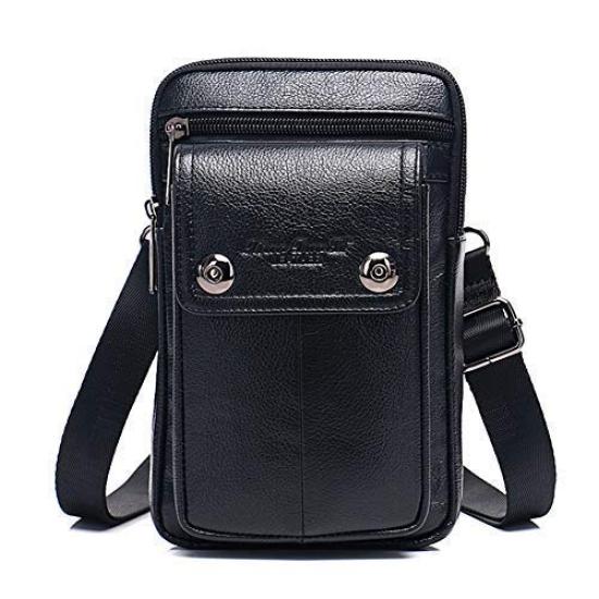Ateng Mini Shoulder Bag with Smartphone Leather Belt Stylish Genuine Cowhide 5 Crossbody Style Men's Storage, Compact, Multifunctional, Outdoor,