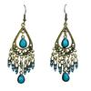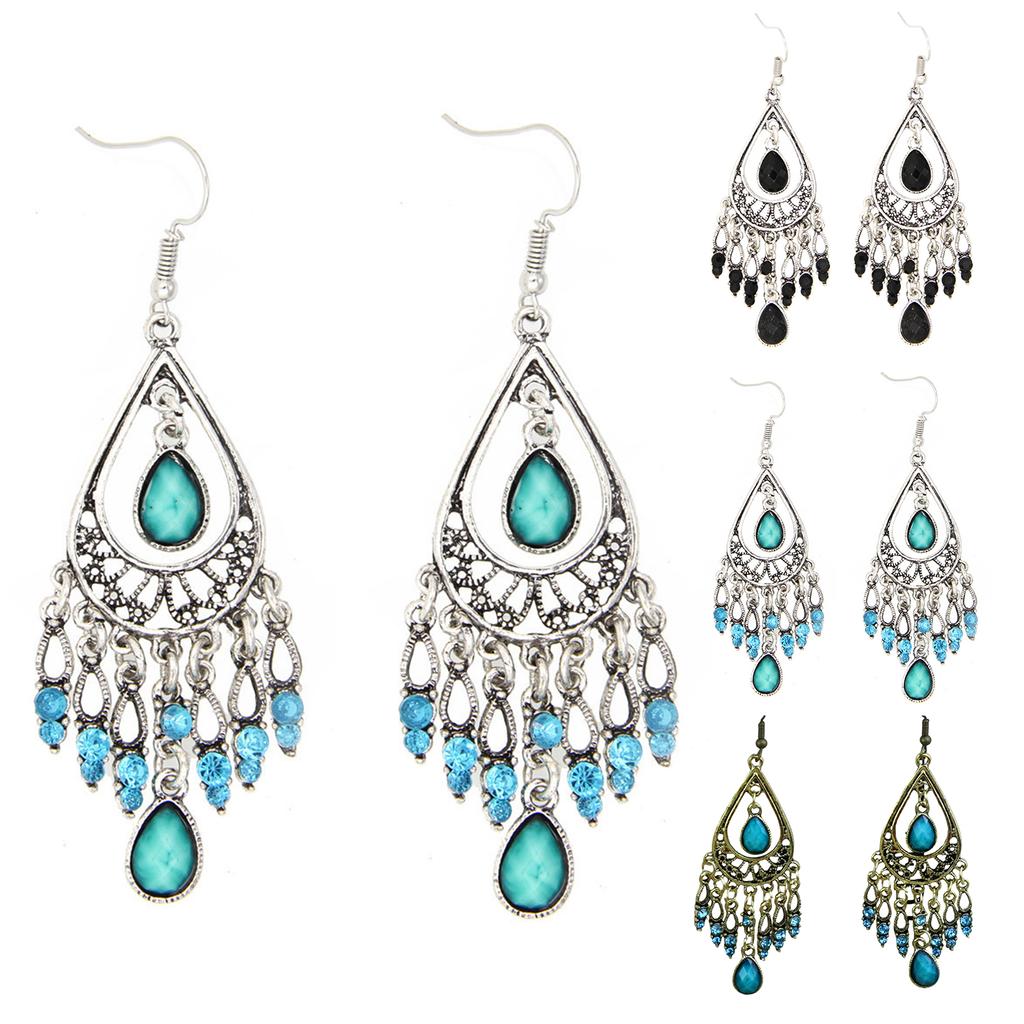 Earrings With Fashionable And Creative Ethnic , Retro Carved Flower, Water Droplet Gemstone, Tassel Earrings
