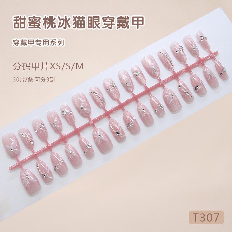 Handmade Prefabricated Nail Three-dimensional Ice Transparent Flash Diamond Butterfly Cat Eye European and American Style Removable Nail Art