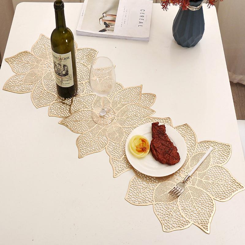 PVC Table Flag Long Style Solid Color Bronzing Table Runner Burlap Creative Irregular Flowers Nordic Light Luxury Decoration