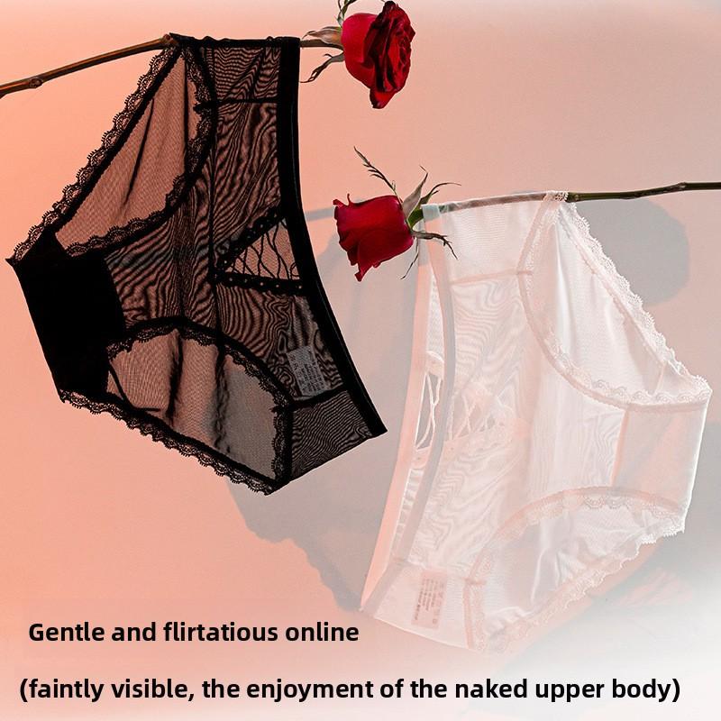 Women's Summer Slim Sexy Lace Edge Half Through Hollowed Out Mesh Low Waisted Triangle Briefs