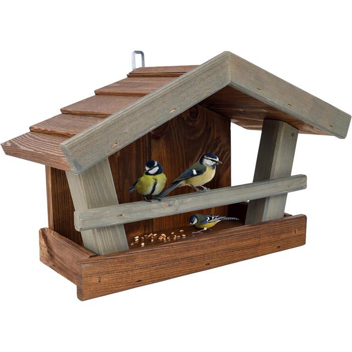 Mangeoire pour oiseaux - CREATIVE HOME - Bois durable - Toit protecteur - Extérieur - 31x13x24 cm