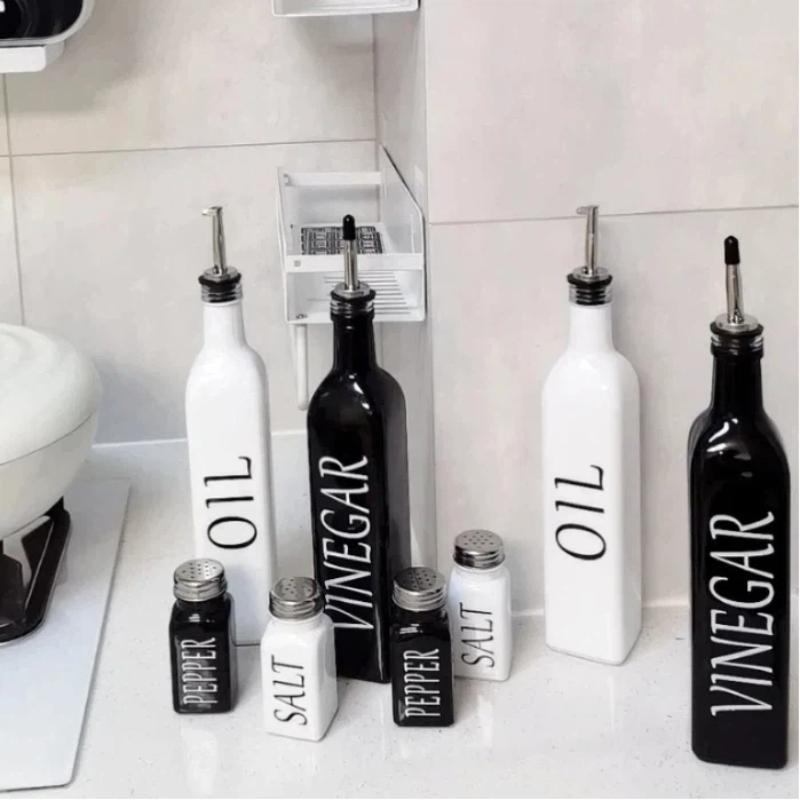 Nordic INS Style Black and White Oil & Vinegar Bottle Set – Minimalist Kitchen Seasoning Jars