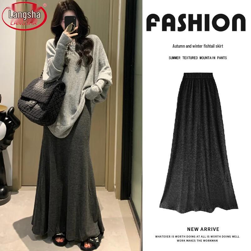 Women's Fall/Winter Elegant Knitted High-Waist A-Line Mermaid Skirt