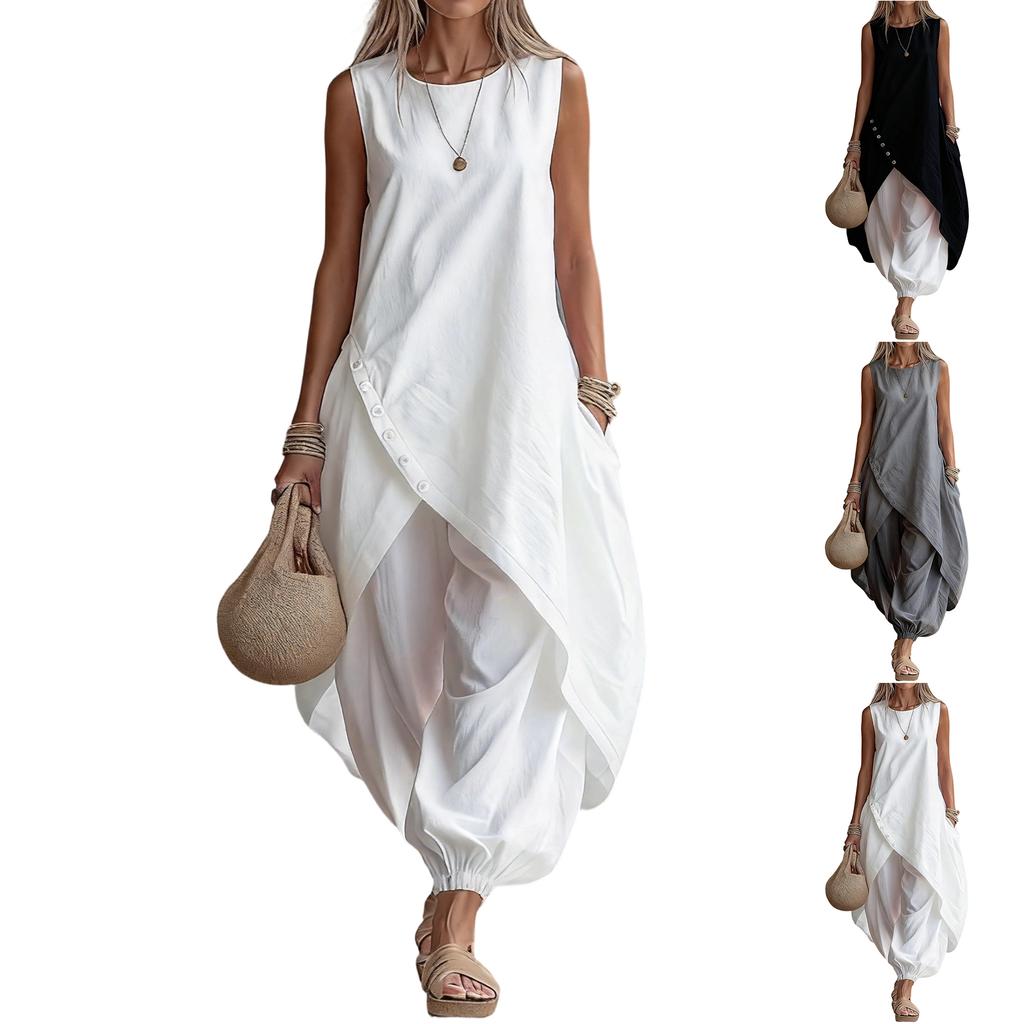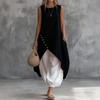 Women's Fashion Casual Colour Sleeveless Cotton Linen Pocket Dress