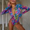 Women’s Long Sleeve Sun Protection Monokini Bathing Suit One-Piece Bikini Swimsuit, Fashion Slimming Swimwear